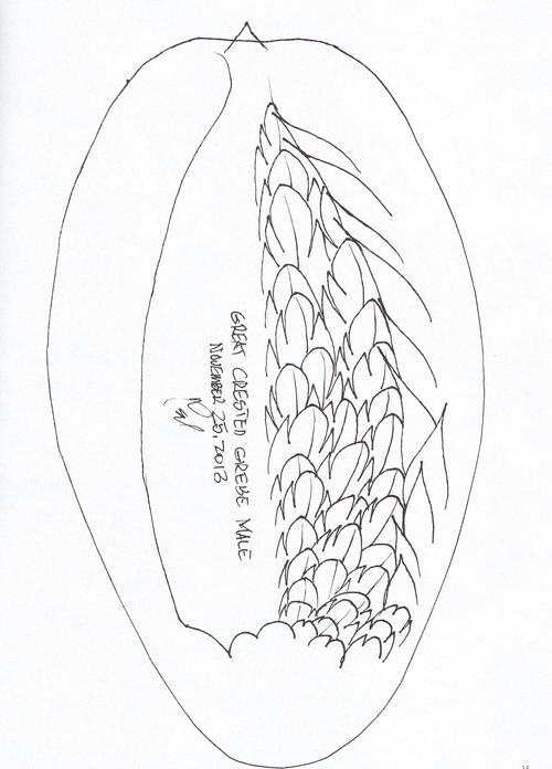Although I had once seen a great crested grebe while in England in 1978, I knew nothing about the species. I needed more information. I went to the Internet for photographs and videos, but still needed measurements and feather shapes. I contacted the Carnegie Museum of Natural History in Pittsburgh, Pennsylvania, which had 21 study skins on hand and loaned me a couple. One of them came from Montenegro in 1930. At that time, the ruler of that region was Alexander I. So I decided to name these birds after him and his wife, Maria.