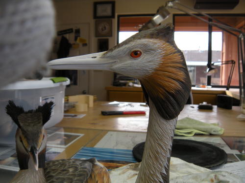 I completed my first pair of great crested grebes, knowing that if I critiqued them honestly, I could do a better job on my second pair. The photos in the article are of my second pair of birds.