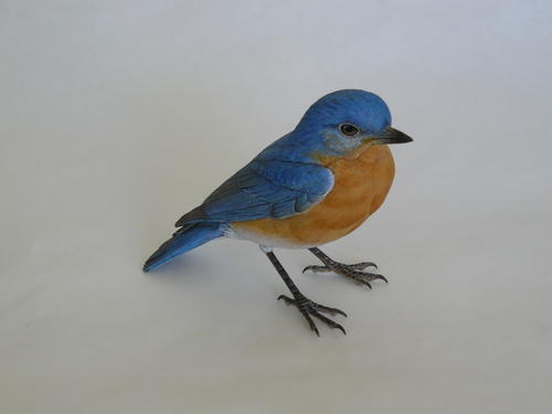 Instead of priming the entire bluebird with straight white gesso, I use gesso to make various base colors. This gives me a jump start on the color layout while also creating a nice, flat color surface to build color washes that don’t contain gesso. Also, this lets me use fewer color washes, which helps reduce the sheen that can occur with some acrylic pigments. I want sheen only in those areas that should have it, such as bill, feet, eyes, and feather quills.