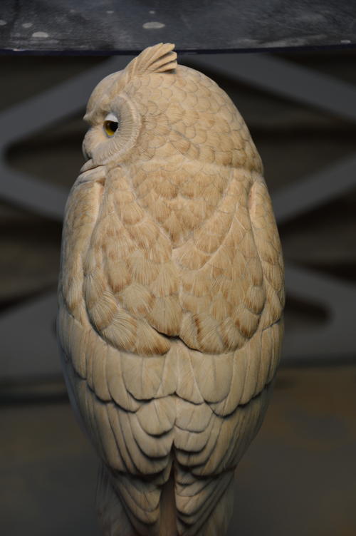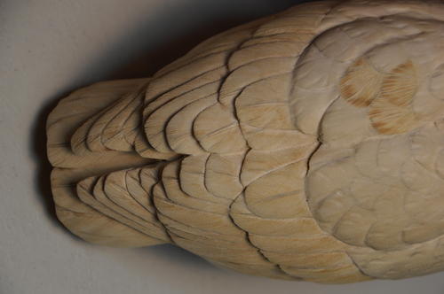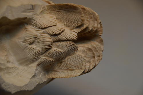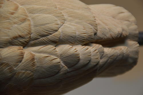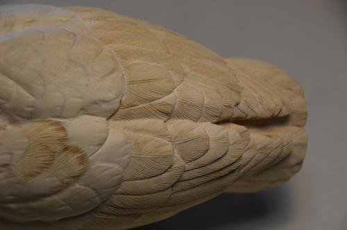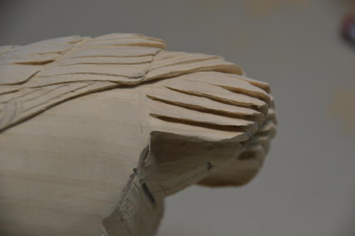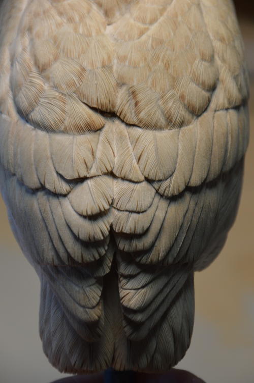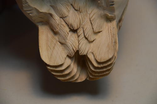 In these views of the back and tail, you can see how I’ve burned in some feather splits, trying to keep them random.