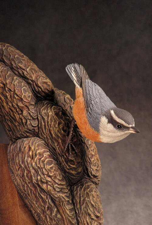 Painting is when your carving comes to life, and that’s why it’s the stage of the creation that should receive close attention. I use acrylic paints for all my carvings because they are durable and work quickly. For this project I used Jo Sonja’s Artist’s Colors, which I like for their more realistic matte finish. I want to control the sheen on my painting, so I add a varnish in specific areas that need it.