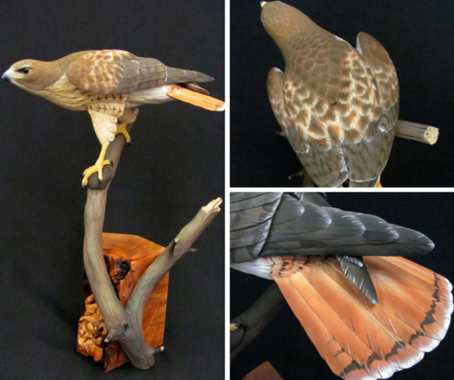 In part one from the last issue of Wildfowl Carving Magazine, I demonstrated how to carve a life-size red-tailed hawk. Now, I’m going to demonstrate how to paint this species, but this time, I’ll be using a half-sized bird with inserts for the primaries. The process is basically the same for both carvings, regardless of their sizes. There’s a great deal of diversity in the appearance of individual red-tailed hawks. Their coloring can depend on the time of year, the lighting conditions when you observe them, the birds’ diets, their ages, the climate, and other factors. So there’s no absolute “right” way to paint this hawk. You just have to try for the effect you want to achieve within the basic guidelines. The paint strategy I outline here will show you how I approach this magnificent raptor.