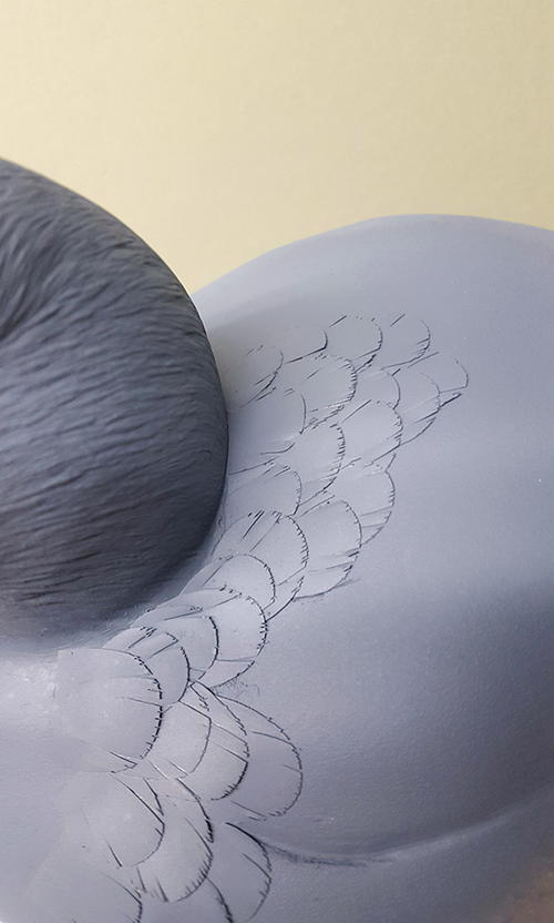 Texturing the head/adding the feathers