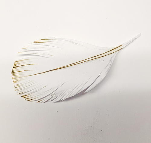 As you can see, my feathers have a great flow. Each is individually raised, and they are starting to look like real feathers (G). Here is a close up of a paper feather (H). Paper burns well with low heat and looks just as good as wood, if not better. You can also shape a feather by using your fingernail to gently pinch and pull it back to get a desired curve.