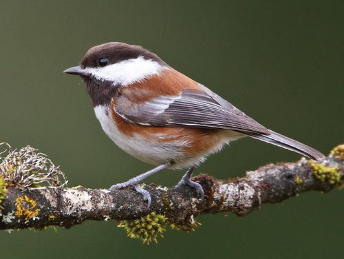 The chestnut-backed chickadee (Poecile rufescens) is one of the smallest chickadees, measuring between 4 ½ and 5 inches long. It has a short tail and a rich brown back. This little bird is always on the move and may be seen upside-down as it looks for insects in the shake of redwoods, pines, and fir trees in the northwest. The California version may lack the red-brown flanks and show only chestnut on its back.