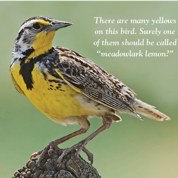 There are many colors on the Western meadowlark. Surely one of them should be called "meadowlark lemon"?