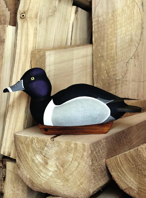 For many carvers, the ring-neck was one of the first ducks they encountered. Whether you are hunting puddle ducks or divers, at some point the ring-neck will visit your rig. I recall one memorable hunt when we planned to shoot only big puddle ducks. We were way back in the marsh but saw several small flights of ring-necks working the area. At the time, there was a two-bird diver bonus, so once we bagged our regular limit of mallards, we threw out a half-dozen ring-neck decoys we had with us. It took hardly any time for a couple of flights of ringers to spy the black-and-white decoys, and a couple of volleys later, we had reached our bonus diver limit. Few will argue the fact that ring-necks can be one of the most acrobatic birds to work a rig; they can sound like a squadron of jet fighters as they drop down out of the sky.
