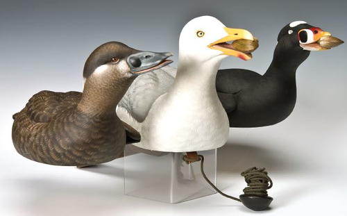 Tom Christie carved two scoters and a herring gull to construct his rig. The three birds form a single unit.