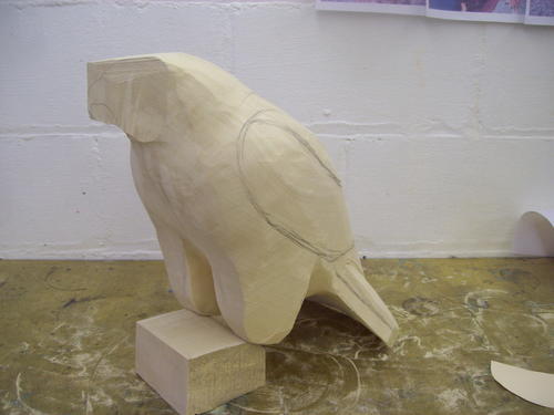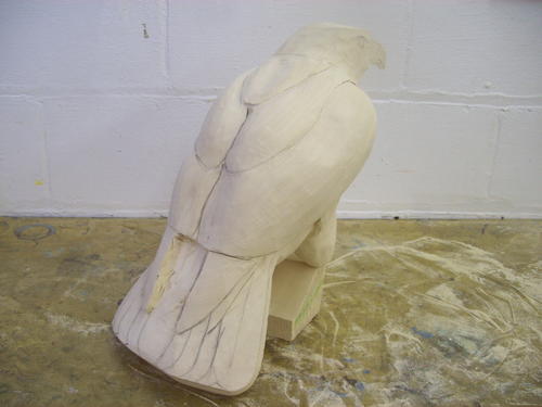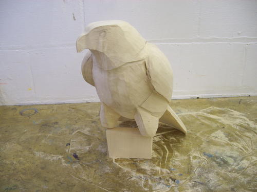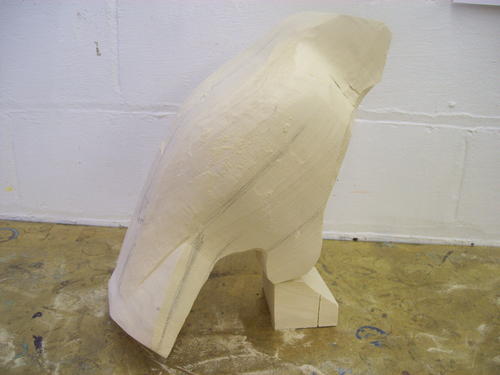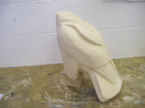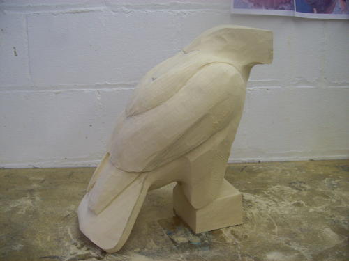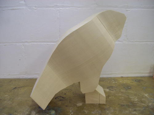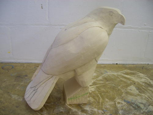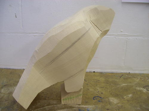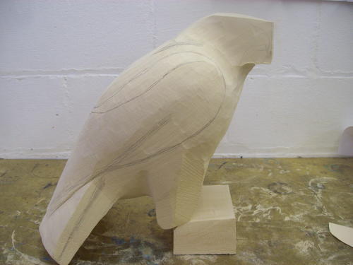 After a session with the bandsaw, the block begins to look a little more like a hawk.