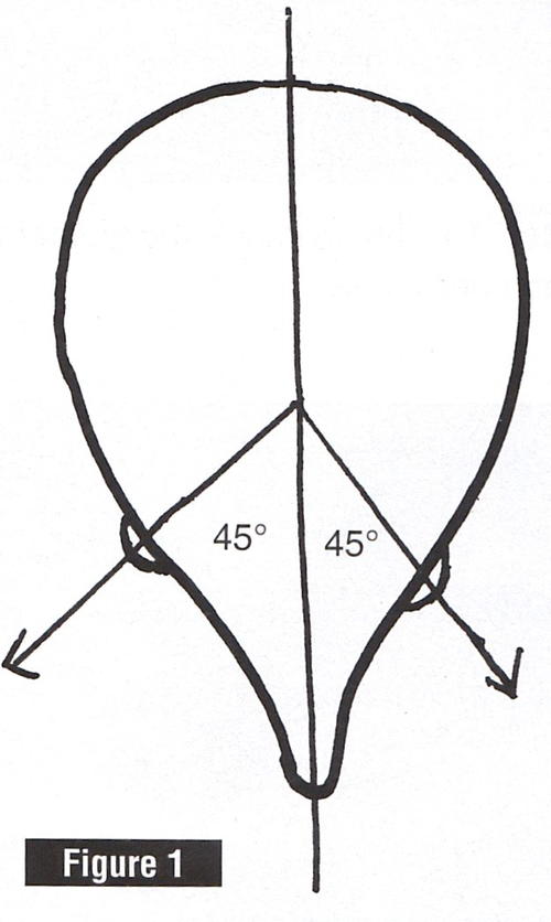 I’ve inserted the 12 mm brown eyes. Since this is a predator, it’s important that you get the eye angle right. The eyes face forward at a 45-degree angle to the head’s centerline. See Figure 1.