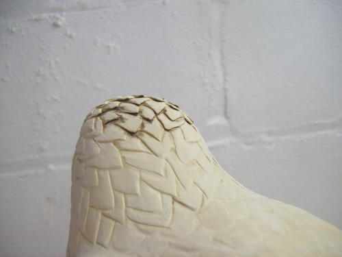 Here I’ve rounded the crest feathers with sandpaper.