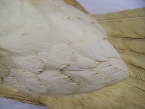 Here’s the top of the tail after burning. You can see how the right primaries are tucked within the tail feathers.