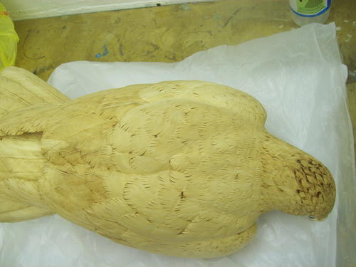 The bird is now ready for paint. I’ve stoned, burned, and sealed it with Deft Sanding Sealer.