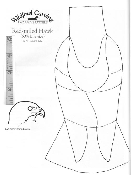 The patterns included with the article are approximately half life-size. I say "approximately" because the sizes of red-tailed hawks vary widely. The length can range from 18 inches to as much as two feet, and their weight can go from 720 grams (about 25 ounces) up to 1,450 grams (a little more than three pounds).