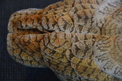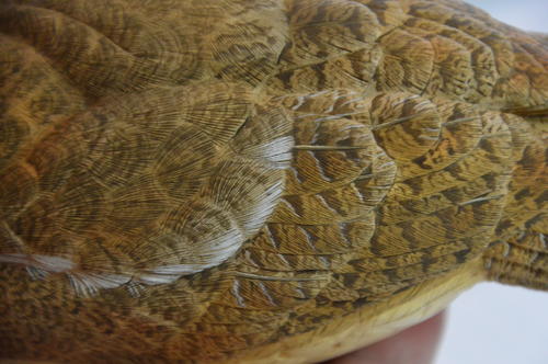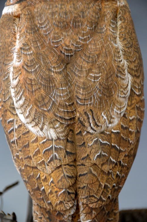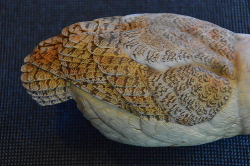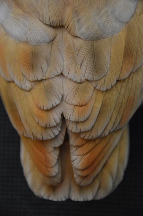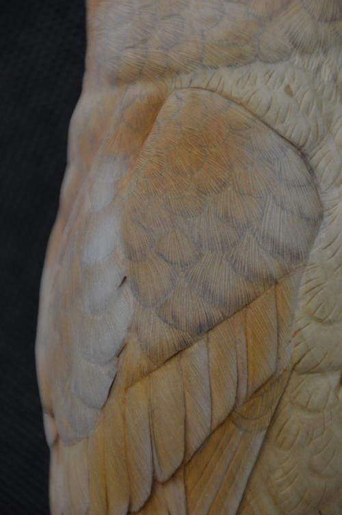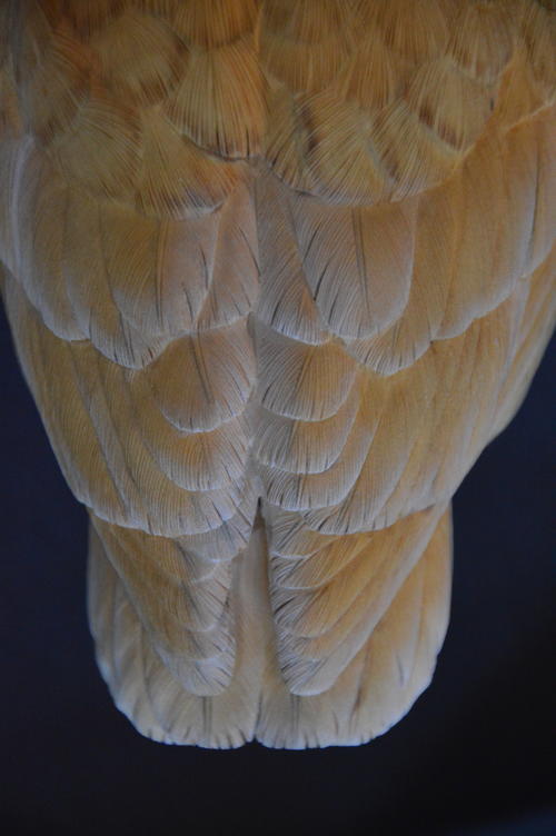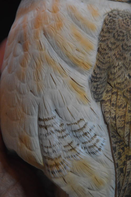 This series of photos shows the finished back areas of the bird. I have spent many hours individually stroking whites as well as browns to get here. Notice the many soft values of browns, oranges, and whites. This is a slow, tedious process, but the end result is well worth the effort.