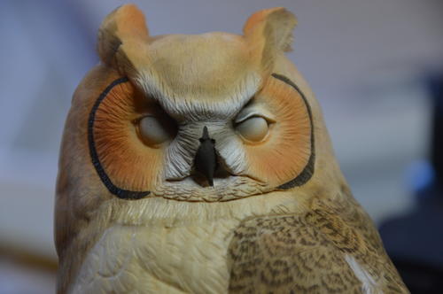 Using a brush, I paint the eye rings and break up the orange edge of the facial disc.