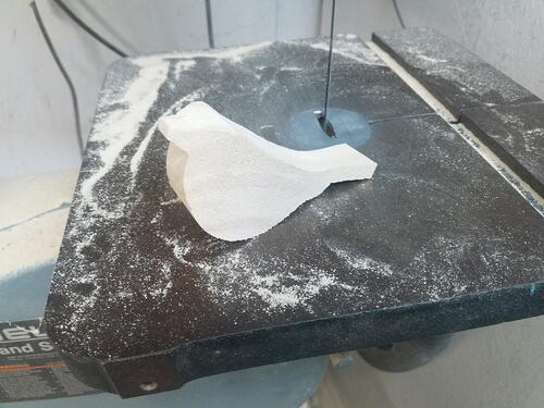 After cutting the side and top profiles of your block from the pattern, your starting blank for the junco should look like this.