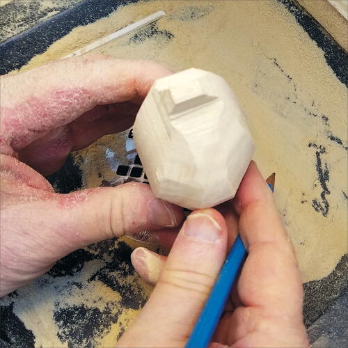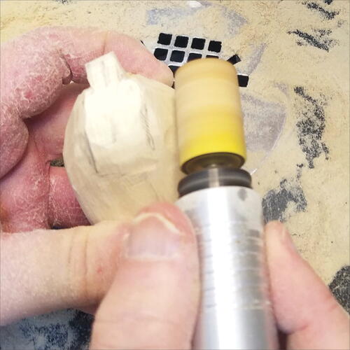 Carve and taper on both sides of the tufts with the large flat-top diamond. You may want to use the diamond ball to again soften the harsh lines of the flat-top diamond.