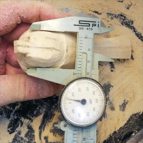You will find that you will carve more off the sides than on the back of the head or throat. Check your measurement with your micrometer.
