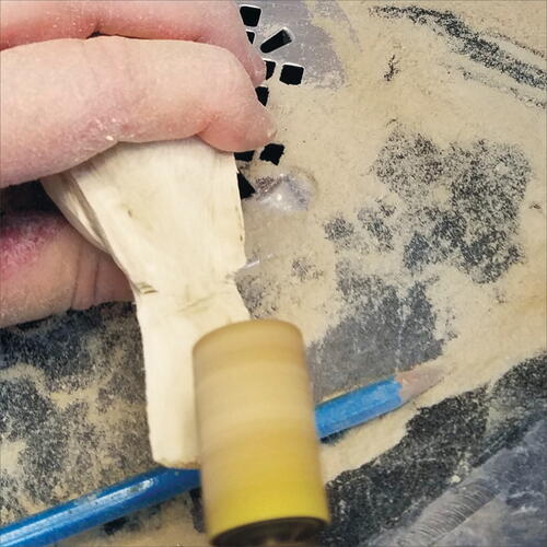 Sometimes while I am stoning a carving, I find a spot or two where I think a little depth carving may be needed. I will use a flat-top diamond for this purpose for easier digging. Keep the touch light.