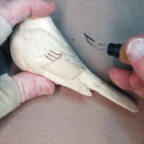 Carve out the area of the primaries and begin rounding off the edges of the top side of the tail.