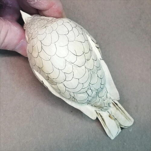 Before you start stoning the carving, you will need to draw the feather placement. Be careful to vary the pattern to avoid a lizard-like or fish-scale look.
