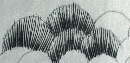Draw in the area of the “shoot” and other tufted areas on the breast.