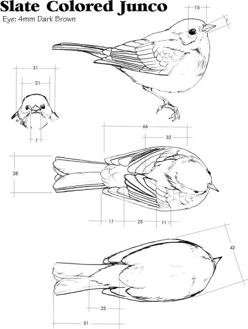 Here in northeast Ohio, this slate-colored member of the sparrow family is commonly identified as the “snowbird.” In Ohio, we use the same name for seniors who head to Florida and points south for the winter. However, when the feathered snowbirds reach Ohio for their winter sojourns, they have already made their trips south, migrating from the more severe weather to our north. Seeing the juncos arrive in Ohio is a clear indicator that winter is upon us. Although this bird has several subspecies, this article will focus on the dark-eyed junco (Junco hyemalis), more commonly known as the slate-colored junco. I will carve the bird from tupelo, using power tools.