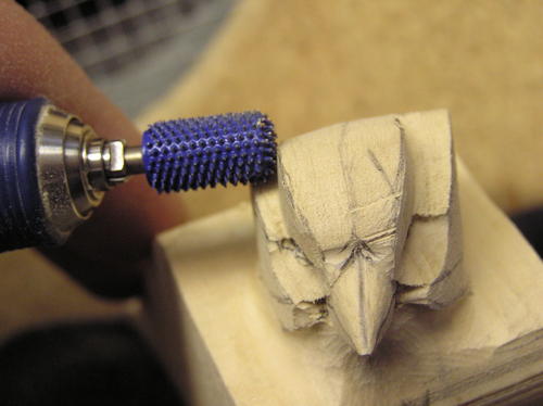 At this point, all the head feather groups are in place, so round off all harsh edges. Make sure there are no flat spots on the head. -