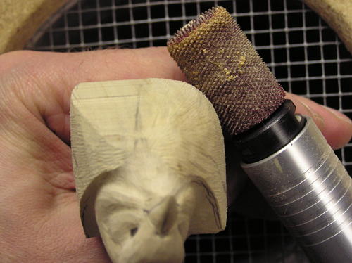 Once the filler has dried, use a diamond flame bit to go around the outside of the eye and carefully create an eye ring by cutting down into the filler. You may find it easier to do this by hand rather than with a power tool. Once the eye ring is in place, sand around the filled area to blend it into the wood. -