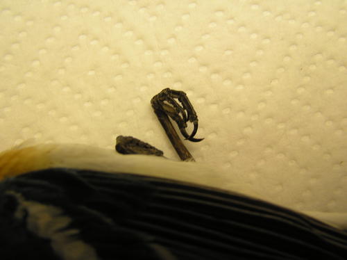 This is the finished bird after completing the legs and feet. Notice the left leg is inset up into the belly flank feathers. You can do this by carefully cutting a channel the width of the leg so it appears as though the feathers are lying around both sides of it.