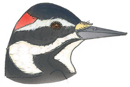 The hairy woodpecker, Picoides villosus, is described as a medium-sized bird, measuring between 81/2 and 10 inches in length. The hairy has a strong, relatively long, and sturdy bill nearly as long as the head. The head has a scarlet nape patch that is divided by an extension of the black crown feathers. The hairy woodpecker can use its tail as a support when feeding, and the outer two feathers are entirely white, lacking any black barring. The bird gets its name from the long, thin, white feathers on its back. The Pacific population has light-brown underparts, while the underparts of the eastern population are white. The measurements for the pattern and painting notes were taken from study skins provided by the School of Life Sciences at Arizona State University in Tempe, Arizona.