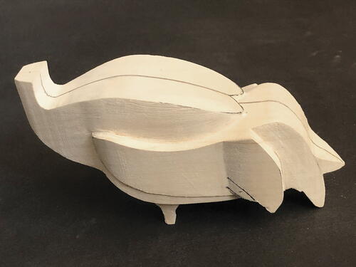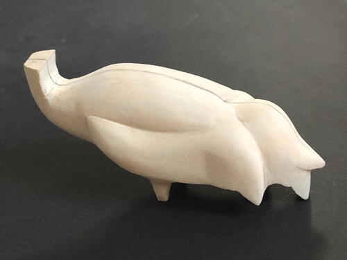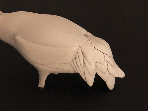 With the basic shaping of the crane more or less completed it’s time to turn to feather detailing. After sketching in some feather layout I remove a bit more material below the “bustle” to make all the feathers fit.