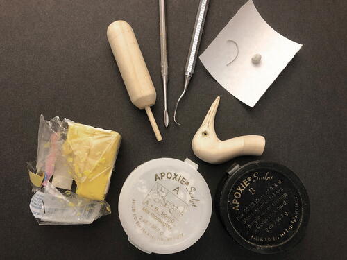 Once I’m satisfied that the eyes are correctly positioned and balanced, I form the eye ring with 2-part epoxy putty. Now I permanently attach the head and smooth out the neck joint. I use 2-part epoxy to join the two parts. After the epoxy sets up, I do some cleaning up and some light sanding to create a near invisible joint.
