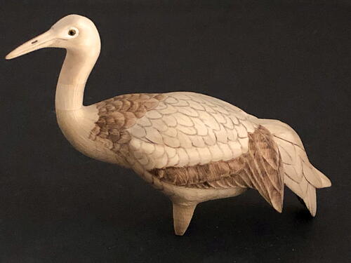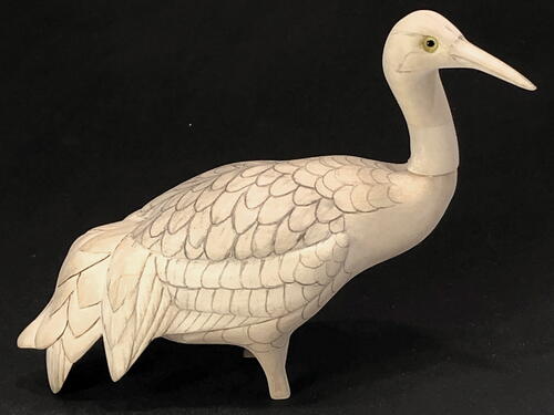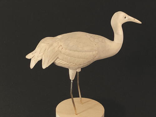 After receiving a coat of gesso, the crane is ready for paint and habitat. I will cover both of these subjects in the next article.