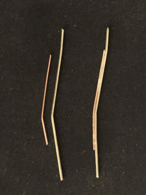 Before starting any burning or stoning I fit the legs. They are brass rod later filled out with 2-part epoxy. Because the crane will be standing in water there will be no need to make feet. I use 1/8" brass rod and 20-gauge copper wire. The copper wire helps form the tendon up the back of each leg and adds strength.