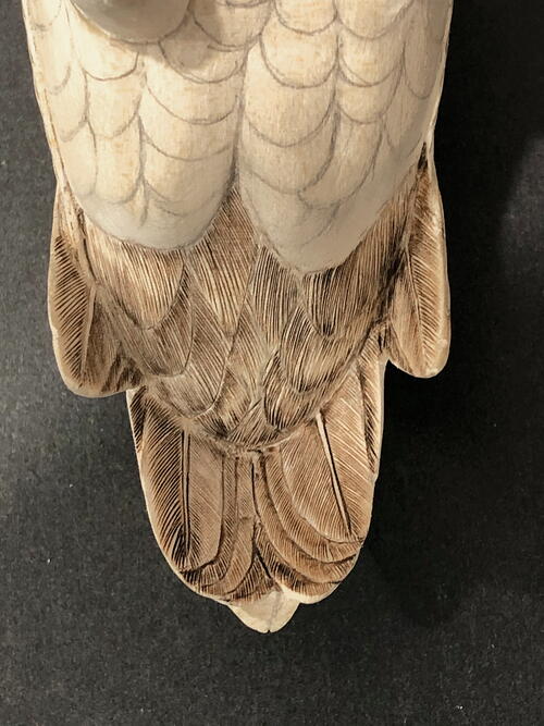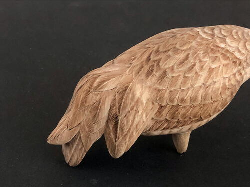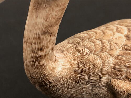 The underside of the flight feathers (tail, tertials, etc.) will be burned while the remainder will be stoned. I have not carved any individual feathers on the areas forward of the under-tail coverts. This part of the bird is very smooth. I will rely on stoning to delineate individual feathers.