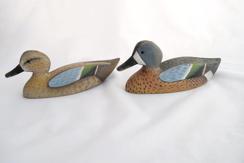 Quite a few of my favorite classes are very serendipitous, and this is a good example. While doing research on some teal decoys, I came across one from the Ottawa Shooting Club of Fremont, Ohio. Dating from the 1870s to 1880s, this decoy has such a simple form I decided to incorporate it into a class. During a weekend class we carved, painted, and finished a pair of them. As you can see, the patterns will work for both green- and blue-winged teal. Look through the instructions and you can see that I was having fun. I omitted some obvious things, like the rounding at the end of the bill and filling in the seams between the neck and body. These were “teaching moments.” The head pattern is on the first page and is from 11 /2" stock. The body is 9 inches long by 4 inches wide and 2 inches thick. You can copy page two side views and paste together at 9 inches. Use the top view painting diagram at 9 inches long by 4 inches wide. For the painting, apply hard lines on the soft lines of the body to give it more of an “edgy” appearance. Have fun and put yourself into the work!