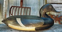 Any decoy aficionado will tell you, though, that a great decoy needs more than just great shape. It needs great paint as well. Blair's decoys certainly show excellent painting, although he did not paint them himself. We do not know who deserves credit for the fine work. The mysterious painter was probably a friend or coworker, but we know him only as the trolley painter or the carriage painter. At the time, painters added the details and fine finish by hand to the intricate carriages of the day, so a carriage painter would certainly have possessed the skill required to paint these wonderful decoys. The combination of masterful carving and masterful painting makes the Blair decoys so desirable. This rare juxtaposition of talents is as important to Blair style as the individual contribution of each craftsman.