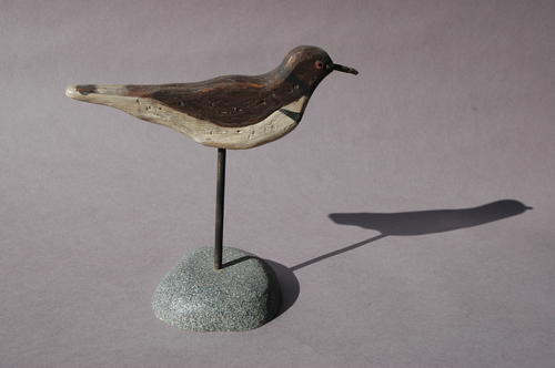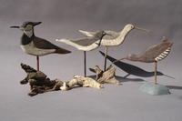 -             Here are some finished birds. At the top is a sora rail, then a killdeer, and finally a northern lapwing. These carved birds have the basic wing and field markings of vintage decoys that were once used to put food on the table. You can put your finished work on a dowel and show it off on a piece of driftwood or base.