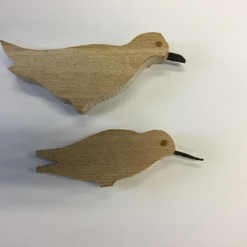 -             To start, trace the outline of any shorebird onto a cardboard matte board, the kind that framers use. Use a 1⁄2" or 3⁄16" board. You can use white cedar or pine, or look for some old barn boards. While you are looking, keep an eye out for old nails, pitchforks, or metal pieces you can use for the beaks. Now cut out the shorebird.