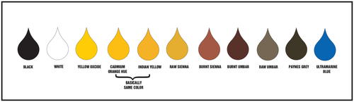 I like to start my new students on acrylic paints. That's mostly because acrylics dry fast, which fits better into the lesson time. Acrylic paints are also far less complicated than oil in terms of the media used for thinning and blending. The only real medium needed for acrylics is water. I like to keep things fairly simple, so I will be using only a few basic painting materials for these demonstrations.