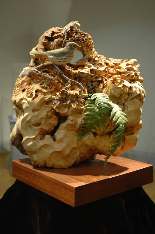 Jerry Painter was the Master Carver at this year’s festival. “Five in the Oven,” his sculpture of an ovenbird and its nest, was the show’s centerpiece carving.