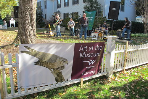 Each year the festival takes over the town of Easton, not just the art museum. The high school becomes a showcase for decoys—both antique and contemporary. The dealer tables in the cafeteria are jammed with hundreds of wooden ducks and geese while the gymnasium included exhibits about duck hunting from years past—and plenty of antiques, including items from the Ward Museum in Salisbury, Maryland. There are more carvers at the middle school, including Ward Museum Living Legend Bill Veasey and decoy maker Charles Jobes, who demonstrated his carving at his booth.