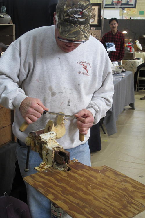 At the middle school, decoy maker Charles Jobes shows how it’s done.