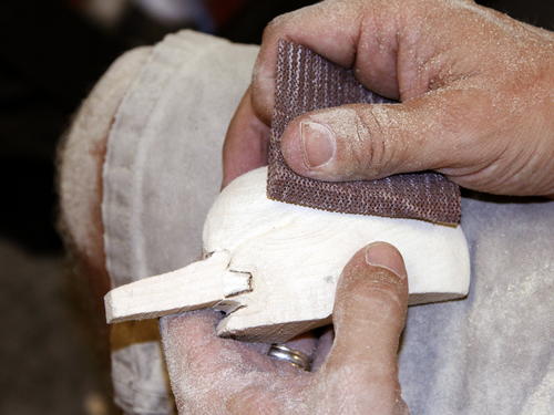 -             Start sanding and see where you are and where the head may need more work. Remember that you can actually do a good bit of carving with that piece of sandpaper.