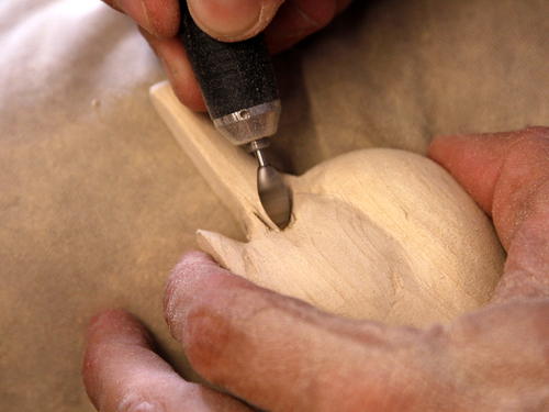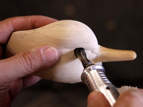 -             With your knife or micromotor, carve the bill keeping your measurements and bill thickness accurate. Don’t remove too much if the bird will be a gunner.