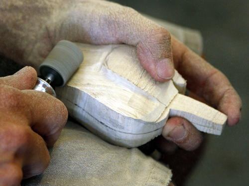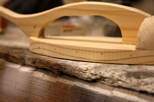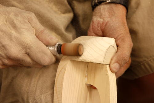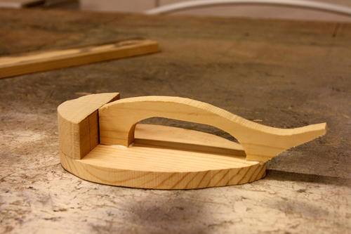 -             Carve/round down the breast block, but don’t get into the head shelf. Make sure the joint where the breast block meets the bottom board is smooth.
