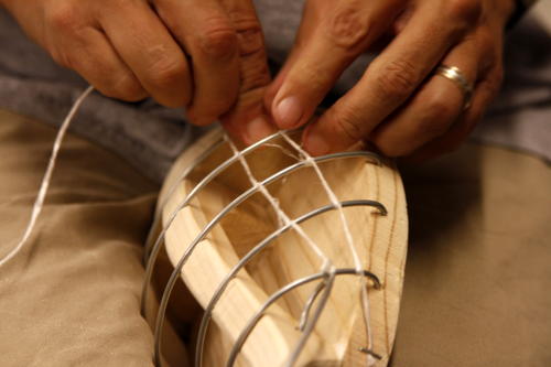 -             This is the body once all the stringer cords have been placed, securing all the wire ribs. In larger decoys, you can add a fourth stringer cord above the first cord. Now the decoy is ready for the canvas. We’ll pick up there in the second half of this demonstration.