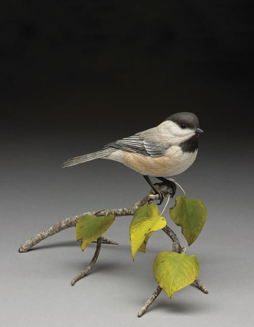When I decided to make a freestanding habitat for the black-capped chickadee, I wanted to choose a species of tree with small leaves that would complement but not overpower the bird. I also wanted something that had a delicate appearance but would be very sturdy and stable. The aspen tree proved to be ideal.